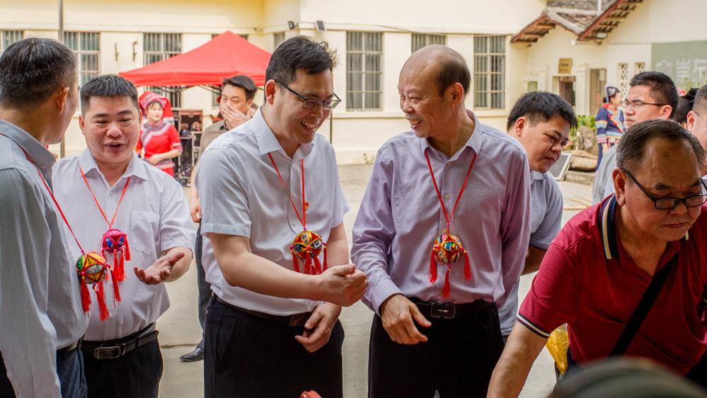 3月28日,江州区人大常委会主任李利民与我校副校长孙振保共同体验“三月三”民俗文化