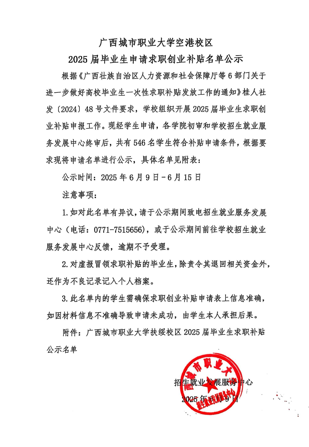 开云在线空港校区2025届毕业生申请求职创业补贴名单公示 发布时间:2025-06-09 浏览次数:次 【字体:小 大】 附件:开云在线扶绥校区2025届毕业生求职补贴公示名单.xlsx 分享到: 【打印正文】