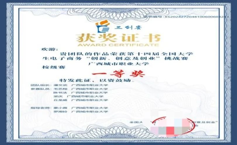 14.2024年5月在第十四届全国大学生电子商务创新、创意创业大赛中荣获校级赛团体奖“一等奖”
