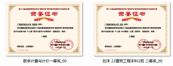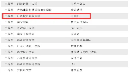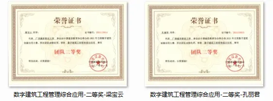 《第十二届全国高等院校学生“斯维尔杯”BIM-CIM 创新大赛》工程造价专项比赛中力压国内多所重点院校斩获全国二等奖,获得了全国第58名、广西第4名的好成绩。
