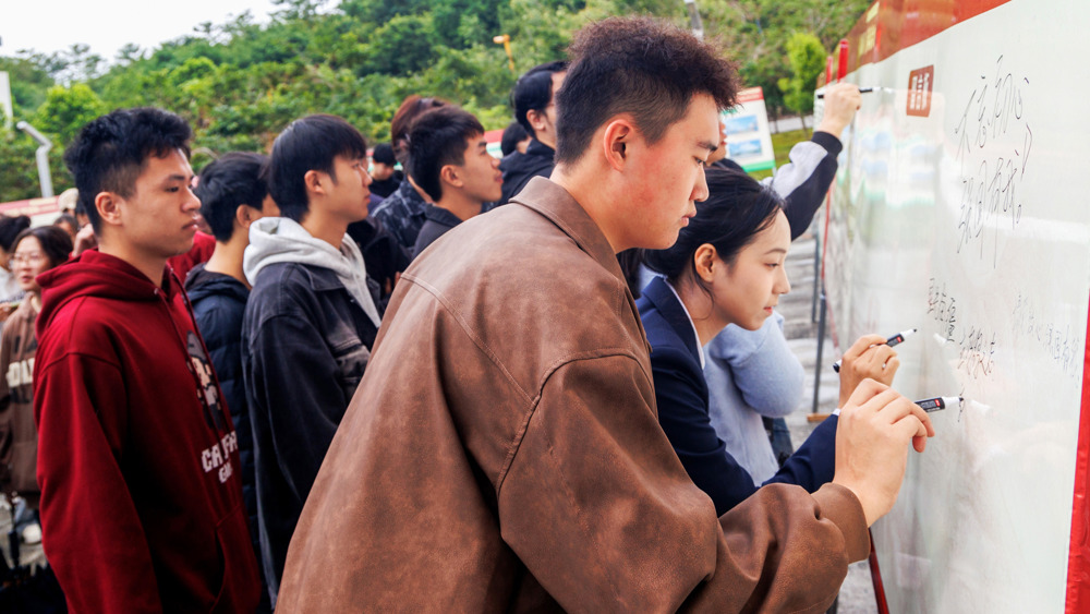 展览现场还设置了互动留言墙,同学们纷纷驻足书写感悟。“以史为鉴,做有担当的南疆青年”“强国有我”“吾辈当自强”等一句句真挚留言,字里行间饱含着对革命先辈的崇敬、对家乡发展的自豪,更彰显了新时代青年传承红色血脉、勇担时代使命的坚定决心,让红色精神在互动共鸣中进一步浸润人心。